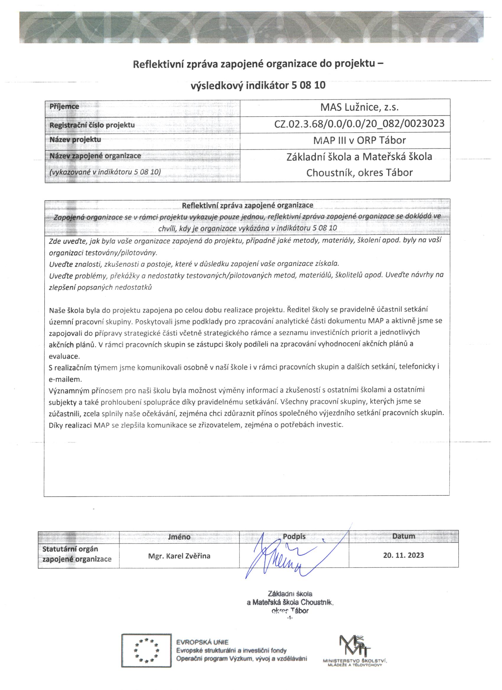 Dokument MAP v ORP Tábor do r. 2025 a Závěrečná evaluační zpráva (schválil ŘV dne 21.11.2023).